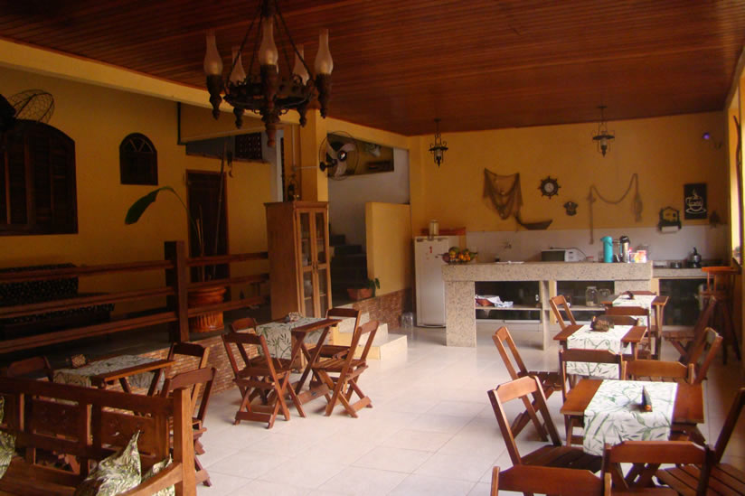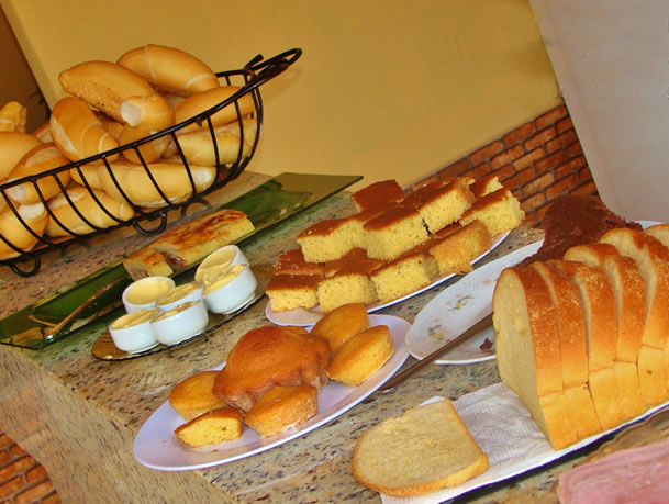 Nossas diárias incluem café da manhã, servido em um confortável e arejado salão. ( Bolos, Frutas frescas, Sucos Naturais, Pães, Café e Leite quentinho, Frios e mais.)